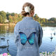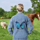 Morpho blue butterfly and editable text Jacket. Text can be personalized or deleted!