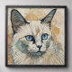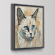A captivating fusion of realism and abstract flair, this art print features a striking portrait of a blue-eyed Birman cat—known for its creamy coat, darker points, and signature white paws. The feline’s gaze is rendered with vivid detail, while its fur flows in soft gradients of cream, gray, and taupe. The stylish watercolor splashes in warm tones that add a modern, expressive twist, making this piece perfect for lovers of elegant animal art with a contemporary edge. Whether you're drawn to the mystique of the Birman or the bold interplay of color and texture, this print brings quiet drama to any space.