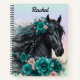 Beautiful black horse with teal flowers notebook, edit the name yourself when you order.