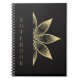 "Keep your thoughts, ideas, and notes organized in style with our black notebook featuring a simple golden flower design.