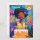 Perfect card for that special queen in your life! Colorful, like she is, and just as beautiful! Bright, brilliant colors in green, pink, and blue to emphasize how she lights up the world. Background is lovely vibrant flora reminiscent of the islands, and a beautiful birthday cake is the cherry on top!