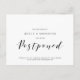 This is the modern minimal simple clean design themed, in Black font, Wedding party invitation Rescheduled (postponed / postponement) postcard (postponed) . It is the perfect and elegant way to make the reschedule announcement to your friends and family.