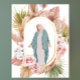 A beautiful print including a hand illustrated image of the Blessed Mother, watercolor florals, and gold foil details.