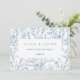 This beautiful blue and white floral wedding thank you card includes a lovely blue botanical floral and foliage pattern with classic typography. The back is a vibrant cobalt blue.