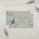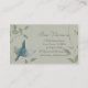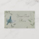 Beautiful painting of a blue warbler bird flying upwards placed on a soft ash green mottled background with elegant leafy vines. Stand out from the crowd with this beautiful and elegant unique business card. The design is given a faux fabric texture for effect. This business card design also comes on many other stationery products to suit all your wedding set needs.