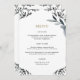 Simple and pretty blue gray foliage border wedding menu with classic typography. Please view this botanical wedding collection for coordinating invitations and accessories.