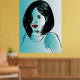 This poster features a stylized original vector illustration of a pretty woman with a lush hairstyle done in shades of blue. Makes a great original wall graphic for a beauty salon or your your home.
