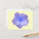 This postcard features a photograph of a Nasturtium flower. The photo has been artificially coloured resulting in a stunning pale blue coloured flower with white and light purple tints. The background is a pale sunshine yellow colour.