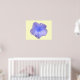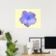 This print features a photograph of a Nasturtium flower. The photo has been artificially colored resulting in a stunning pale blue colored flower with white and light purple tints. The background is a pale sunshine yellow color.