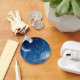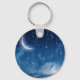 this keychain's design describes a beautiful blue starry sky and a crescent moon.