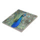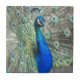Ceramic tile featuring the photo image of a beautiful, blue Peacock with colorful fantail feathers. Select your tile size. Makes a great kitchen trivet!