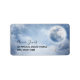 Address labels with a magical fantasy sky with fluffy blue clouds and a big beautiful moon. 2 white swans flying off together.