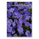 Beautiful blue violet petunias are imprinted on this vertical greeting card. Marvelous in shades of blues and purples! Text reads, "The sweet smell of Petunias..." Customize this using Zazzle's many different font styles and colors. This image can be transferred to other products. If you need any help, please don't hesitate to contact me, and I will be more than happy to assist you. You may contact me through my Wolf Moon Art and design Facebook page. You can find the link on my about page in my store. Look at the bottom of the page where it says "connect with Wolf Moon Art and Design". Original photography copyright 2017 by Karen Coffelt.