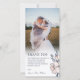 Beautiful wedding thank you card in blush pink, blue, and navy blue with pretty flowers and greenery. Add a photo!