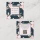 Beautiful Blush Floral with QR Code Dark Blue Square Business Card