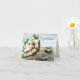 With the ocean as the perfect backdrop, this beautiful bouquet of roses in stunning simplicity is the star of this wedding congratulations card.