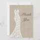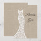 A romantic lace wedding dress accents this thank you on an illustrated burlap background. There is lots of room on the back for your personal message. Scroll down to see other items in the collection.