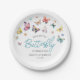 Beautiful Butterfly Girl Birthday Party Paper Plates. Design features a classic white background with an array of colorful watercolor butterflies framing an elegant personalized template. Perfect for spring and summer celebrations, garden parties and picnics in the park!