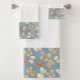 An assortment of watercolor butterflies on a cool blue background creates a beautiful design on this bath towel set. Stylish and pretty, elevating your bathroom decor. Butterfly pattern is displayed on one side of each white towel as an elegant accent.