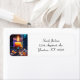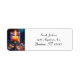 A little candle in a glass jar, surrounded by colorful crystals, gives light on this beautiful holiday address label.