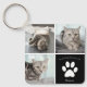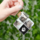 This beautiful cat photo memorial keychain is personalized with adorable pictures of your sweet girl kitty. Customize this thoughtful keepsake gift with your own custom feline photographs next to a black square with a cute white paw print and your kitten's name in loving memory.