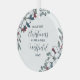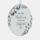 First Christmas as Mr & Mrs Christmas ornament personalized with your shared last name with the year framed by pretty bouquets of Christmas flowers in white, red, blue, and green.