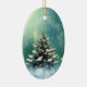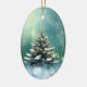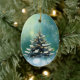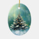 Beautiful Christmas Tree with Snow and Gold Lights Ceramic Ornament