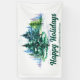 This beautiful custom company holiday party banner features gorgeous green Christmas trees in a winter landscape above your customized business name and Happy Holidays. Personalized holiday decor for a corporation or family.