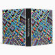 A binder with a closeup photograph of circuitry from an old hard disk drive enhanced and filtered in various ways to create a vividly colorful candy like effect.