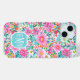 Customize this gorgeous modern colorful flower garden of flowers in pink, orange, aqua, and yellow iPhone 15 plus case with your your initials in a modern CAP font in white on blue. It's so vibrant and happy!