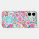Customize this gorgeous modern colorful flower garden of flowers in pink, orange, aqua, and yellow iPhone 16 case with your your initials in a modern CAP font in white on blue. It's so vibrant and happy!
