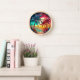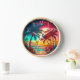 This beautiful clock is a great way to add a reminder of your favorite beach vacation to any room. Featuring colorful palm trees, sand dunes, and a calming ocean in the background, this clock captures the essence of a beach paradise. The vibrant colors and intricate details bring a touch of the tropics to any wall, creating a relaxed and inviting atmosphere. Perfect for a beach-themed room or a reminder of a special vacation, this clock is sure to bring a bit of sunshine to any space.