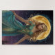 Beautiful Cosmic Goddess jigsaw puzzle. © Jigsaw Wonderland at Zazzle. This puzzle is of a beautiful cosmic Goddess with long blonde hair, a jade gown and a large moon framing her face.