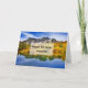 Birthday card with a beautiful country photograph. Stone mountains with an autumn forest in bright colors. A quiet lake reflects the mountains, trees and grasses.