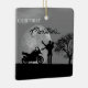 This unique motorcycle couples Christmas ornament design features a charming blue background with a moon and tree and a romantic couple next to a motorcycle. Text on the front reads "Our First Christmas". Personalize the back with a name and year.