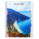 Colorful watercolor artwork on a Spiral Notebook that is featuring a coastal view on the beautiful Greek travel destination of Kefalonia in the ionian sea. Colorful greek vacation souvenir for every tourist and fan of the popular european destination in the Mediterranean Sea. Purchase now.