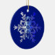 Deep dark blue background with a simple, elegant snowflake. On the reverse, the text (currently reads Christmas 2010) is customizable. You can add a name, a date, a saying, or anything you like. Personalized ornaments make unforgettable gifts. This holiday ornament is made of ceramic, is quite large (2.87 inches in diameter), and hangs from a gold cord (included). Perfect for Christmas trees, to decorate packages, 100 other uses!