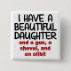 Beautiful Daughter Gun Shovel Alibi Funny Button
