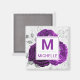Beautiful Deep Purple and Silver Flowers Monogram Magnet