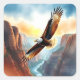 A beautiful ai watercolor illustration of an Eagle flying over a river running through a canyon.