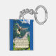 Beautiful Eagle Scripture Keychain of a colorful, detailed scene with a glorious Bald Eagle spreading its wings and flying high in the blue sky above a plush green valley next to the foothills of a mountain. This scene accompanies the Bible verse, "But they that wait upon the LORD shall renew their strength; they shall mount up with wings as eagles; they shall run, and not be weary; and they shall walk and not faint." Isaiah 40:31. This keychain makes a wonderful gift or can be used to remind us of the Word of God.