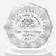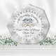 Beautiful Elegant, Personalized, 60 year Wedding Anniversary Gift for Parents, Grandparents your friends and family. Octagon award with pretty facetted design. Designed with a lovely large custom printed Diamond and lovely Pearls with faux silver colored Glitter look trim. Satin look white and silver tinged center background surrounded by silver colors and swirls.