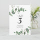 Beautiful delicate elegant budget eucalyptus foliage wedding table number design. Modern elegant on trend sage green, black, navy blue and white stylish contemporary rustic collection. Ideal for spring, summer, fall, autumn or winter weddings.