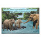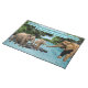 Beautiful Elephant Scripture Cloth Placemat of a colorful, detailed scene with a concerned mother elephant and a tusked juvenile elephant helping a timid baby elephant cross a clear blue river that is lined with plush green trees. This scene accompanies the Bible verse Luke 6:31, "Do onto others as you would have them do onto you." This Cloth Placemat makes a wonderful gift or can be used to remind us of the Word of God.