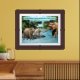 Beautiful Elephant Scripture Framed Art of a colorful, detailed scene with a concerned mother elephant and a tusked juvenile elephant helping a timid baby elephant cross a clear blue river that is lined with plush green trees. This scene accompanies the Bible verse Luke 6:31, "Do onto others as you would have them do onto you." This Framed Art makes a wonderful gift or can be used to remind us of the Word of God.