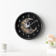 A clock with a beautiful illustration. A feminine face in the moon surrounded by flowers.