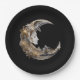 Paper plates with a beautiful illustration. A feminine face in the moon surrounded by flowers.
