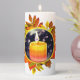 This candle is designed for the Fall Holiday Season. This candle is printed image of an acrylic and water color painting of a lit candle with beautiful Fall colored leaves.