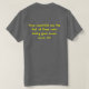My 11 yo wore adult XL (5’7” 165#). The 8yo is small framed. She wore adult small and tied it in the back. Grandma wore adult large with long sleeve shirt underneath. Tall girl adult medium. Dark haired male adult large. Good quality dark Heather gray, Gildan brand shirt. -it was next up from basic choice and cost about $20 per shirt. Not too thick or thin. Washed and dried well, no major shrinkage. Not see-through. Can wear a bra under it fine. Screen print is just as shown and well done, front and back.