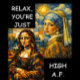 Ever feel like art history is just one long, beautiful fever dream? This design brings together the world's most famous faces in a chaotic, colorful collision of styles. From the sharp edges of Cubism to the starlit swirls of Post-impressionism,